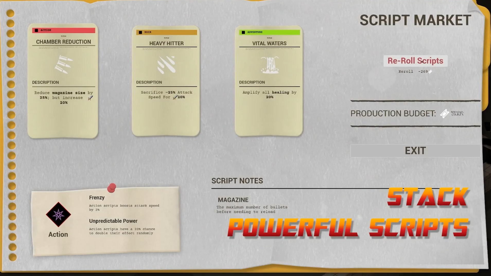 Stuck on Set is a top-down action roguelite where every run plays out like a production disaster. Choose your weapon Prop, lock in your Role, build game-breaking Script synergies, and fight your way through a movie set.